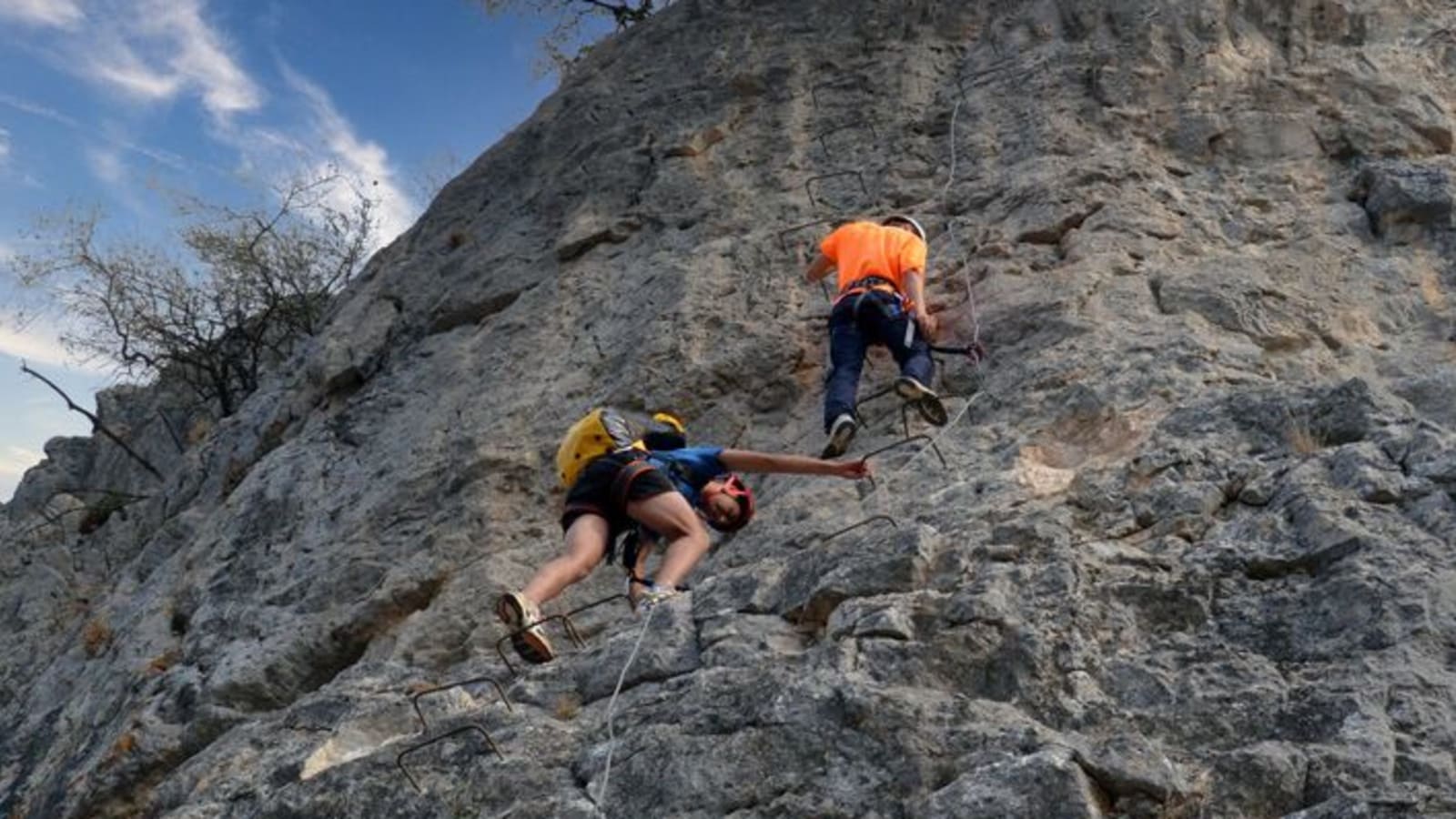 Zwei der fünf Touren tragen das Level "Für alle geeignet", darunter die Sierra de Gracia in Archidona. Du brauchst keine Klettererfahrung, aber Schwindelfreiheit ist Pflicht. Die Sicherung erfolgt durchgehend mit Klettersteigset am Stahlseil.