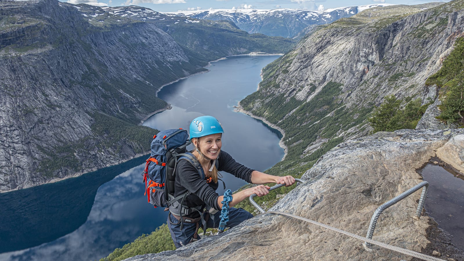 Trolltunga is the destination for the 10h tour, which combines via ferrata with a hiking excursion. The 5h tour does not include Trolltunga and meets at the Norwegian Museum of Hydropower and Industry in Tyssedal.
