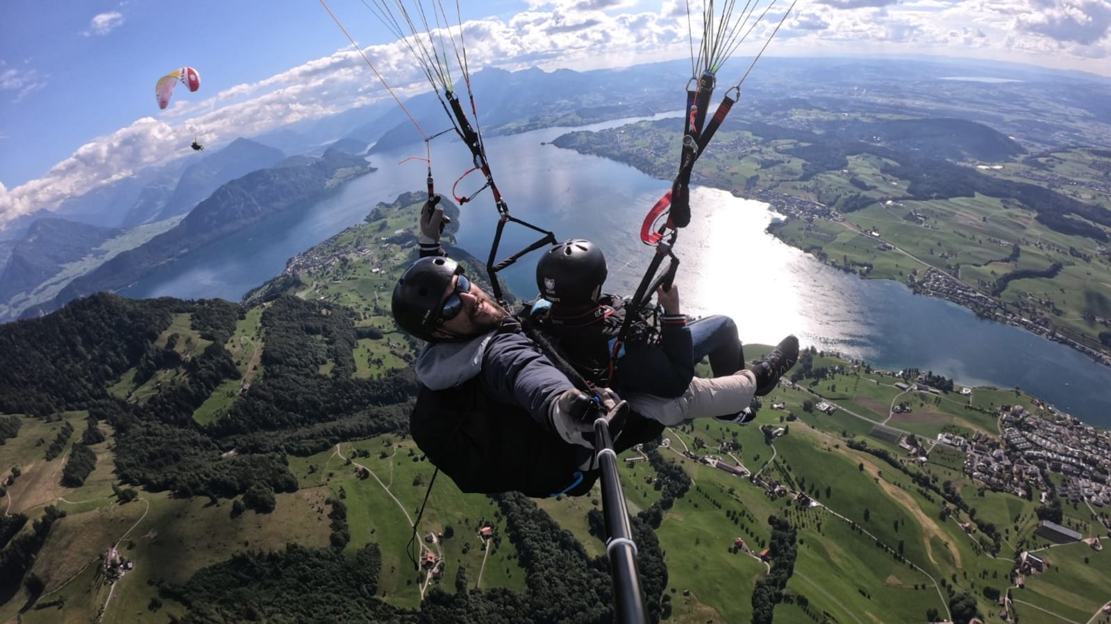 Parapente biplaza sobre el lago de Lucerna, Suiza