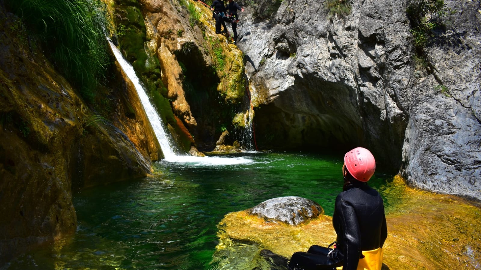 Les passages en rappel dans les gorges du Mont Olympe constituent le pic d'adrénaline : vous descendez en rappel face aux parois calcaires avec le torrent qui dévale sous vos pieds. La descente en toboggan naturel sur les dalles rocheuses vient juste après.