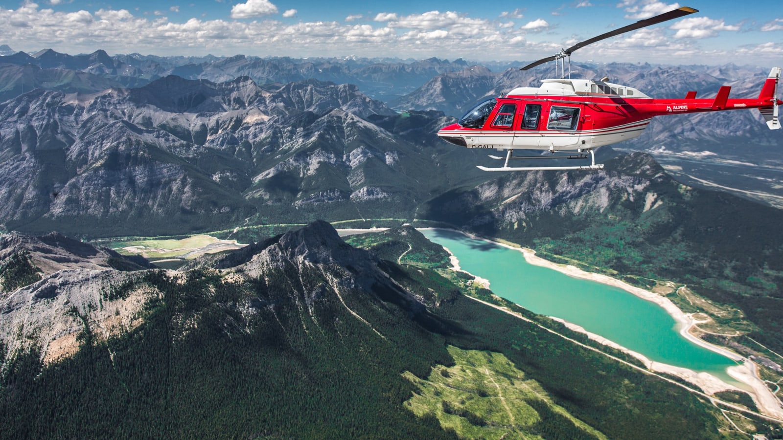 Alpine Helicopters propose un survol des Rocheuses canadiennes au départ de Kananaskis, pour 148,39 $ CAD par personne. La durée varie de 35 min à 1h selon la formule choisie sur place. Accessible à tous (aucun niveau physique requis), ce vol convient autant aux familles qu'aux voyageurs solo. Les briefings sont disponibles en 7 langues, dont le français. Réservez à l'avance : les créneaux matinaux offrent une visibilité optimale sur les glaciers et les sommets enneigés.